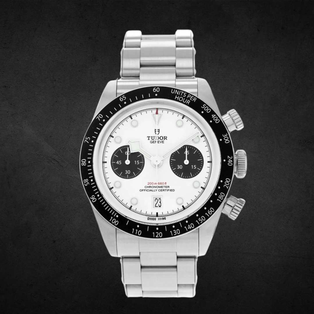 This timepiece comes with a five-year transferable guarantee that requires no registration or periodic maintenance checks. It features a 41mm steel case with a polished and satin finish and houses the self-winding mechanical movement. Manufacture Calibre MT5813, certified by COSC, boasting a substantial 70-hour power reserve. The watch is waterproof to 200m and equipped with 316L steel screw-down pushers at 2 o’clock and 4 o’clock. A black anodized aluminum disc with a tachymetric scale and silver markings accentuate the fixed steel bezel. Its opaline dial with black counters and a date display at 6 o’clock is protected by a domed sapphire crystal. The watch is completed by a riveted steel bracelet with polished and satin finishes, featuring a folding clasp and safety catch.